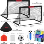Quality and Durability Above All Else – 2 set of 4′ x 3′ portable soccer goals both made of durable Oxford cloth and 10MM fiberglass poles with good toughness and wear resistance. The std size 3 soccerball benchmarking against various big brands of soccer, made of durable TPU, designed to resist abrasion and last longer. Can support kids to kick the ball into it reasonably hard! Great for Training and Funning!